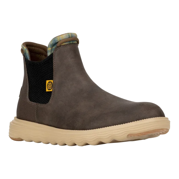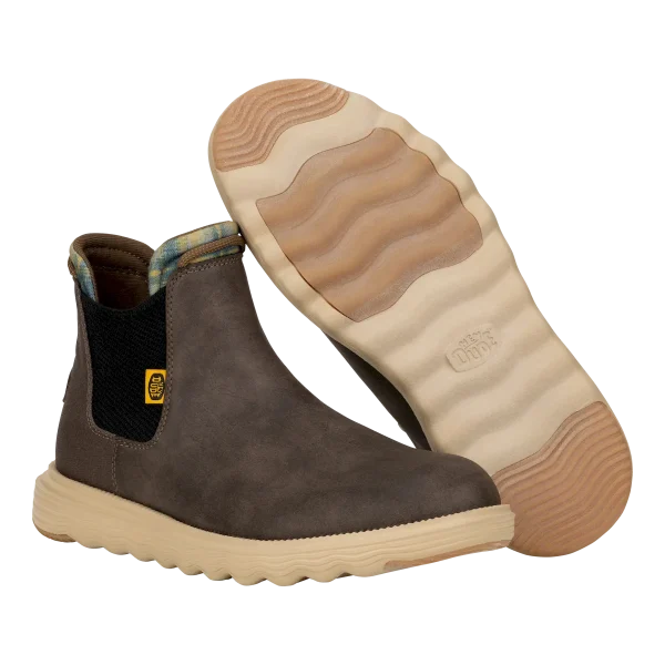 A classy boot for a classy dude. Branson Classic is in it to win it this season with a faux leather water repellant upper, lightweight flex outsole and rubber pods for added traction. Slip into classic HEYDUDE™ comfort and style.