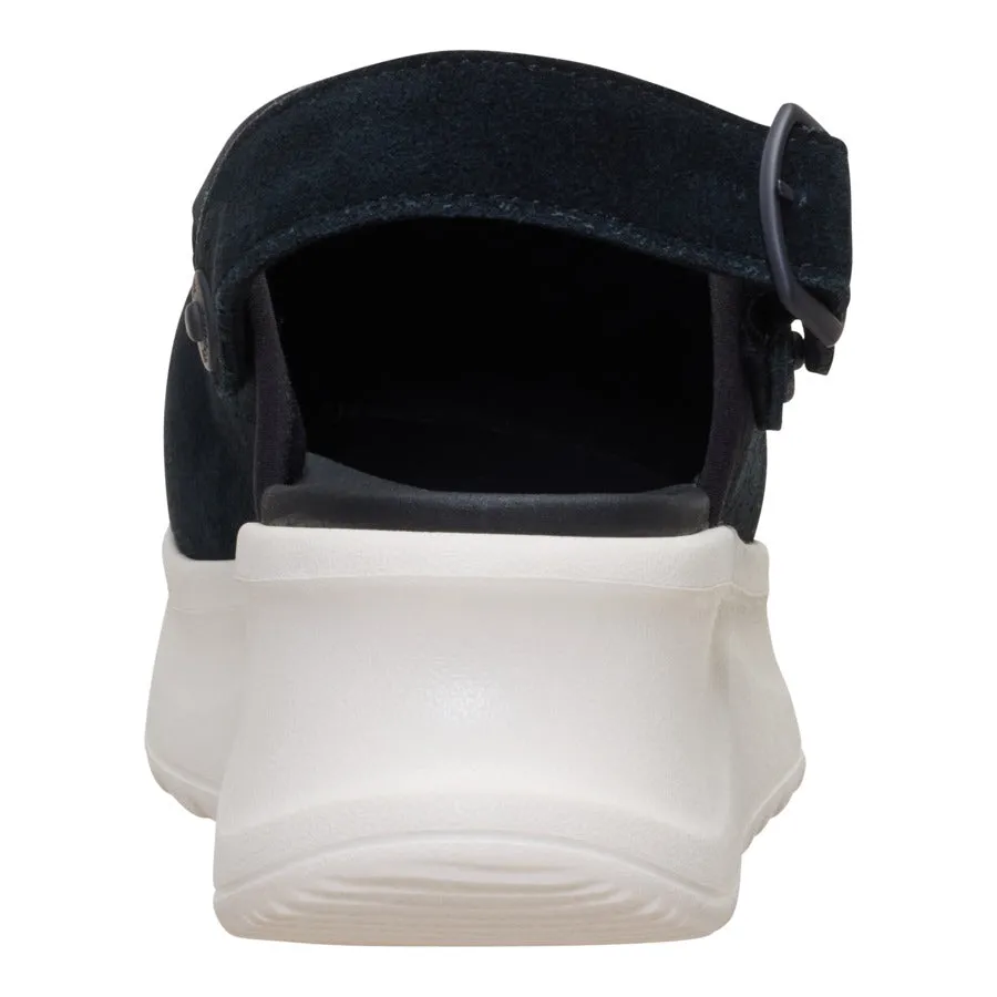 - Suede upper adjustable back strap