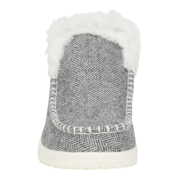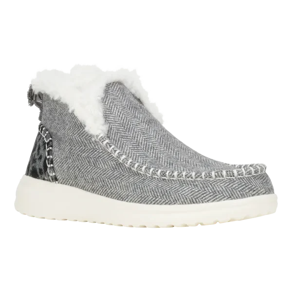 Like sticking your foot into a boot-shaped sweater, except it’s the Denny Leopard boot. Outsole so light and insole so snug. Pull-tab to help slide-on when your fingers get chilled.