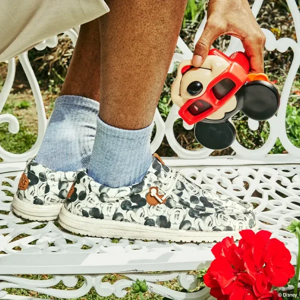 Say hello to Mickey Mouse. With an iconic old-school aesthetic, these Mickey Mouse slip-ons have a jersey upper (read: comfy T-shirt vibes), limited-edition retro Mickey House print, lace charms, and signature HEYDUDE™ feels. Ahhh classic and comfy—the best pairing since Mickey and Minnie.