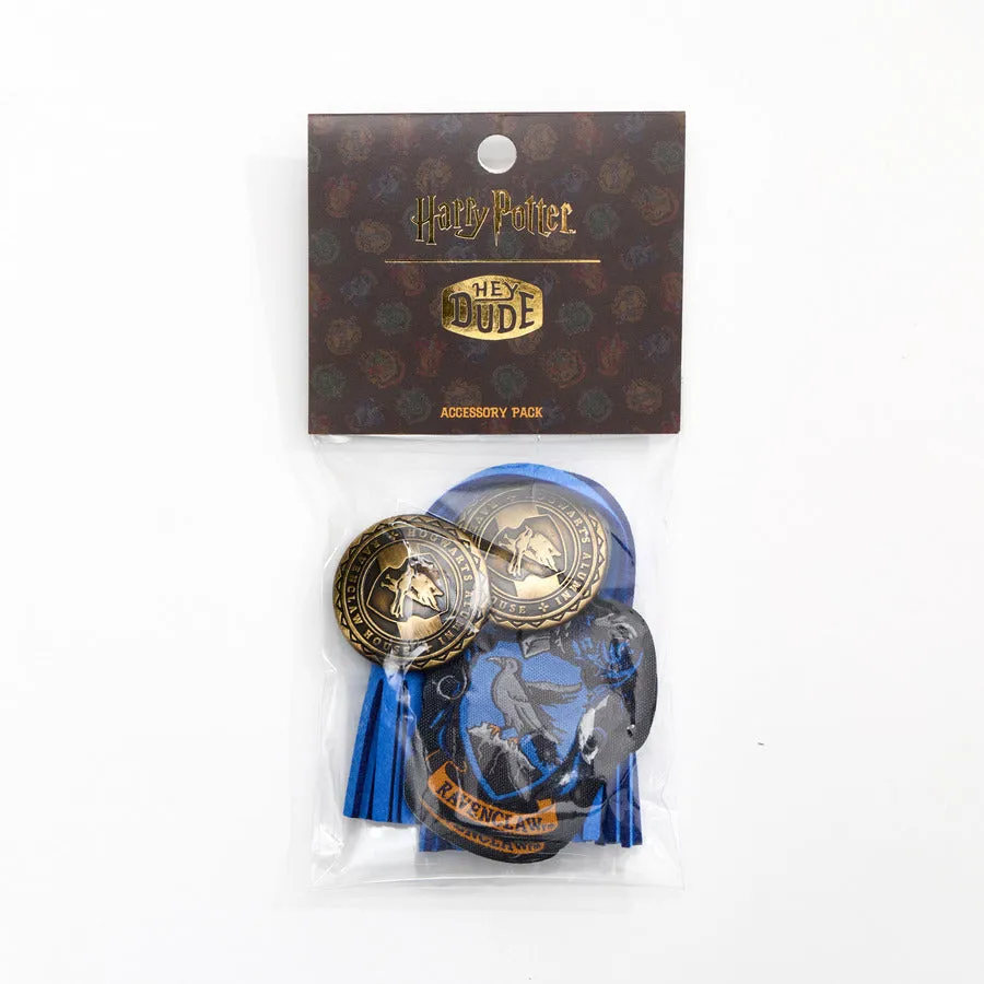 Prove your loyalty with this Harry Potter x HEYDUDE Ravenclaw accessory pack that includes a tassel, Ravenclaw coin and crest to customize your own Potter pair. First house pack is FREE with purchase of the collab Wally or buy additional house packs and show even more support for other houses.