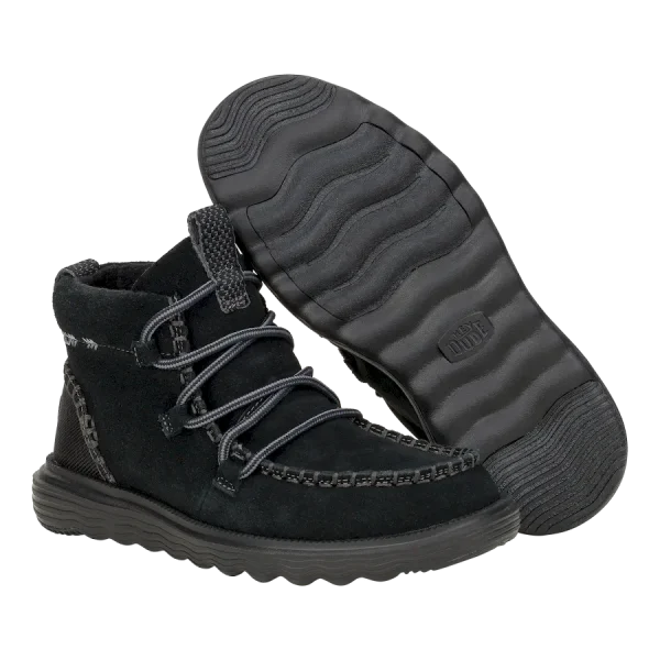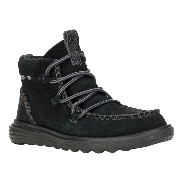 The Reyes Suede checks all the boxes: comfortable, cozy and cool toned colorways. Featuring a lace up front with easy-on and off thanks to our classic stretch lace system and dual pull-on tabs. Same go-to lightweight HEYDUDE™ construction with a suede upper and flattering mid height. This is the moc of the season.