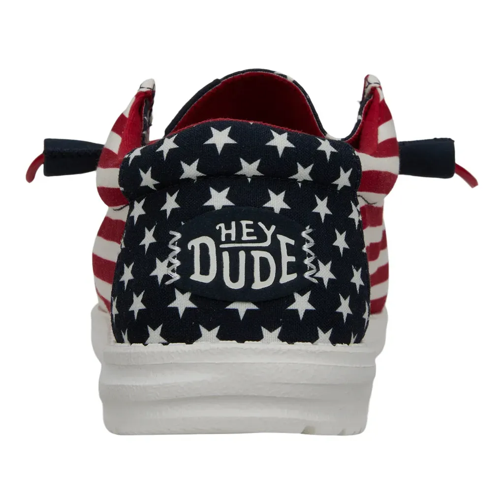Stars and stripes meet free-roaming, HEYDUDE ™ comfort in the Wally Americana, complete with easy-on and -off laces, a printed sock liner, and cushioned foam under every step.