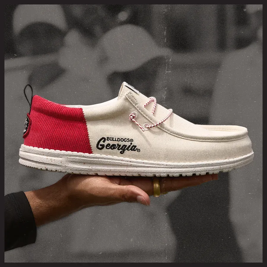 Gooooooooo dawgs, sic ‘em! Take it from the tailgate to the Dawg Walk to Sanford Stadium in vintage-inspired slip ons stitched with Athens pride. Bulldog red and white. UGA details. And gameday-ready comfort. These are for the real ones who know what’s coming down the track.
