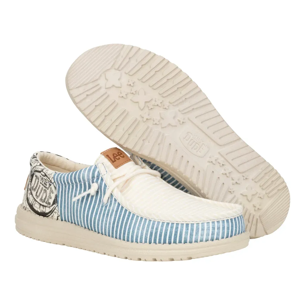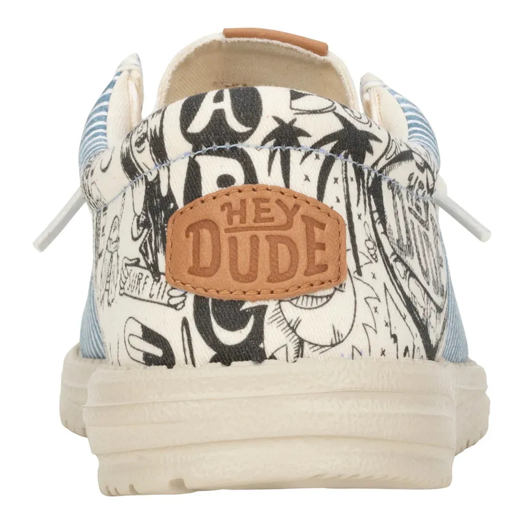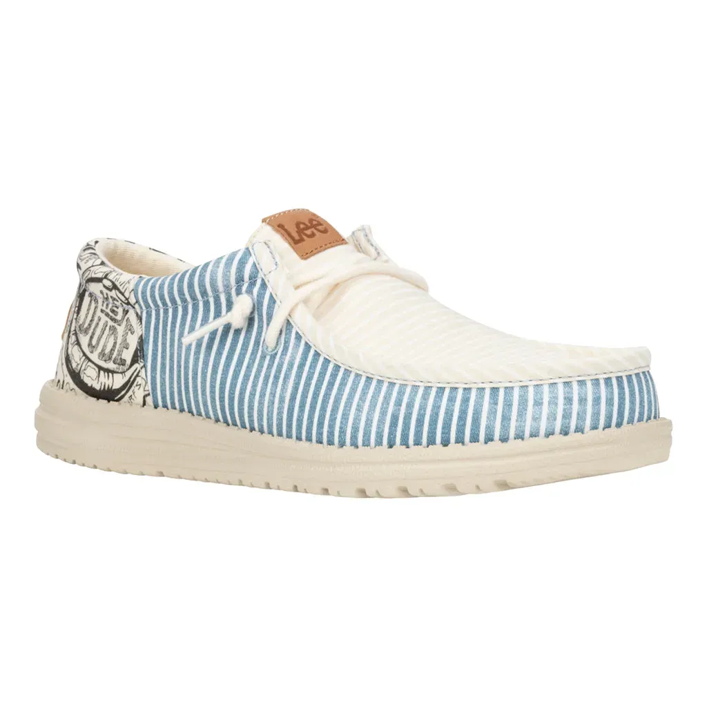 Introducing the ultimate go-to for dudes who like their style with a splash of street art. Canvas upper and graffiti print heel offers both style and comfort. The graffiti printed insole adds a hidden detail, while the easy on system and removable foam insole ensure effortless wear. Faux leather logos rep both Lee and HEYDUDE™ for a statement piece celebrating individuality.