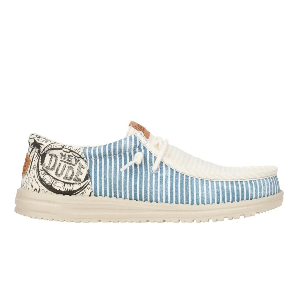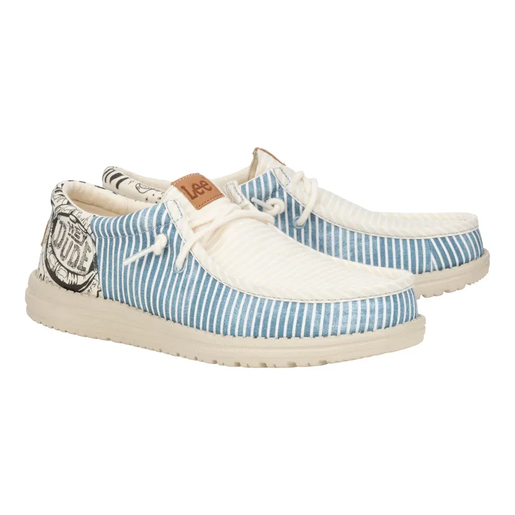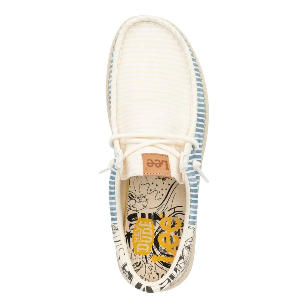 Introducing the ultimate go-to for dudes who like their style with a splash of street art. Canvas upper and graffiti print heel offers both style and comfort. The graffiti printed insole adds a hidden detail, while the easy on system and removable foam insole ensure effortless wear. Faux leather logos rep both Lee and HEYDUDE™ for a statement piece celebrating individuality.
