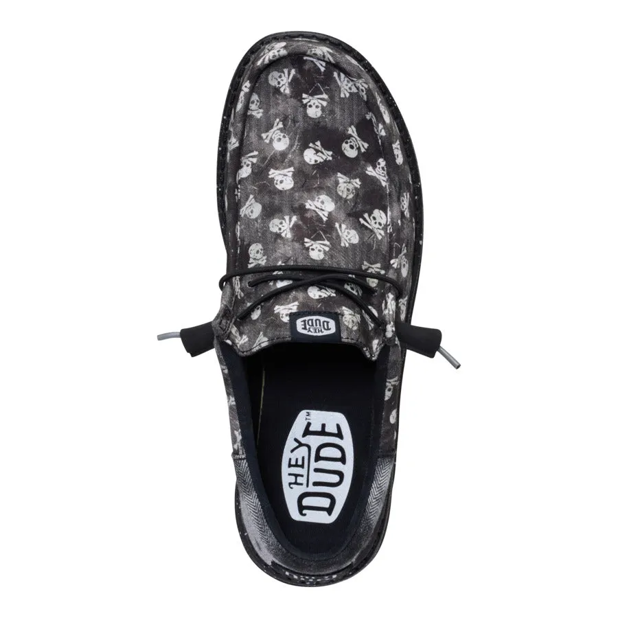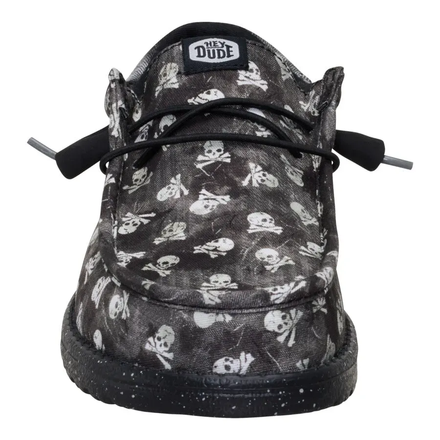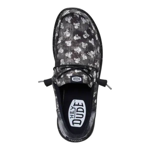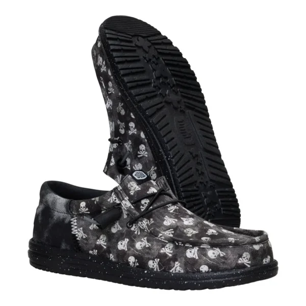 Don’t let the skull and crossbones fool you. These Wally Funk shoes put the “jolly” in the Jolly Roger. Made with printed textile and a herringbone heel piece, these shoes have ye land lubbers smiling thanks to the easy step-in design and elastic laces ye don’t have to tie. Arrgh! What a comfortable shoe this be.