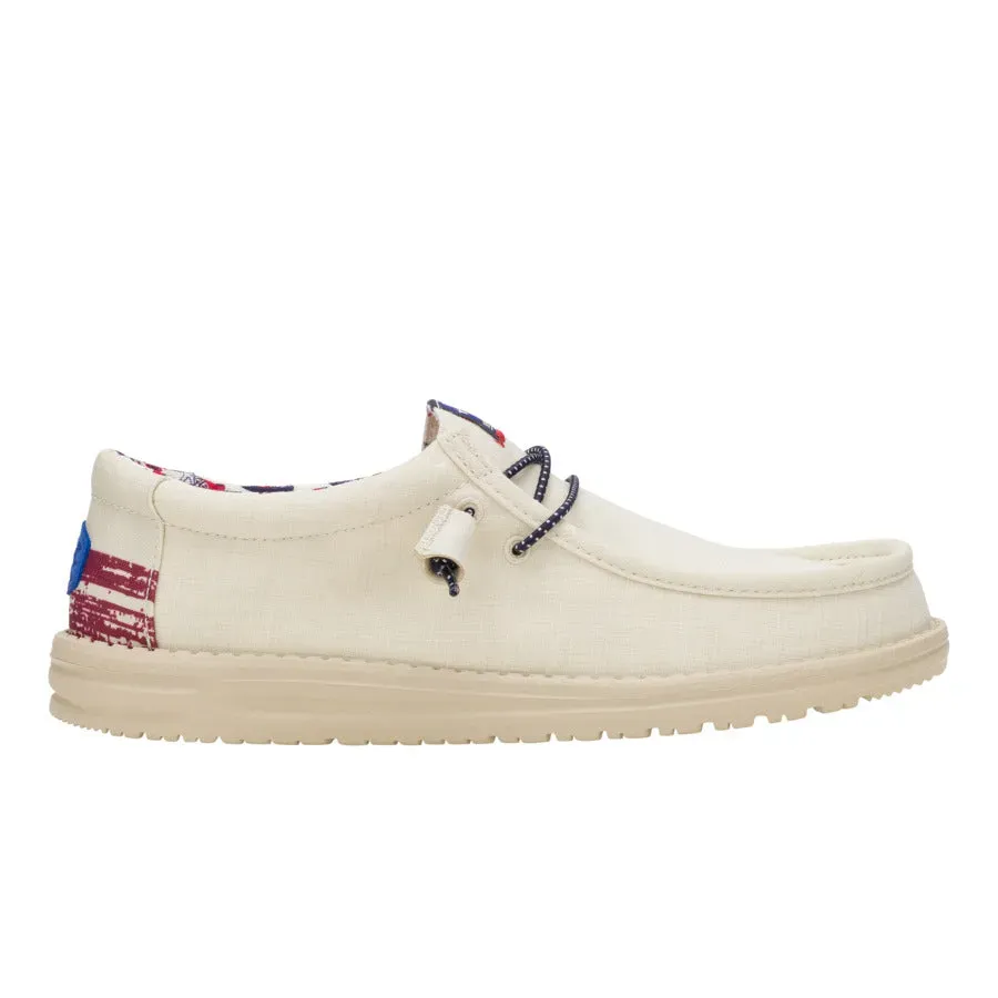 Laid-back, Lone Star style. You don’t mess with this pair of Wally shoes from HEYDUDE™, capped in the heel with a print of the Texas state flag. They’re made with a textile upper and ride on our famously light and flexible outsole. The wide collar is easy to enter, and signature elastic laces are the kind you never need to tie.