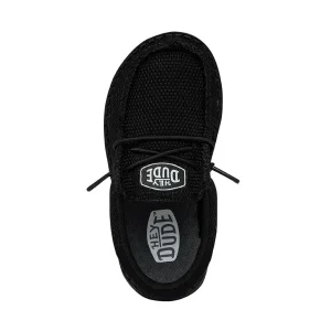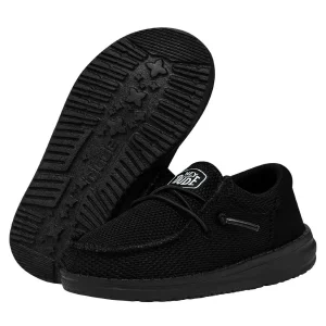 The poly knit fabric is stretchy and breathable. Elastic laces make the Wally Toddler Funk Mono easy to slip on and off, while the monochrome colorway is for our stylish user that wants a simple, classic look.