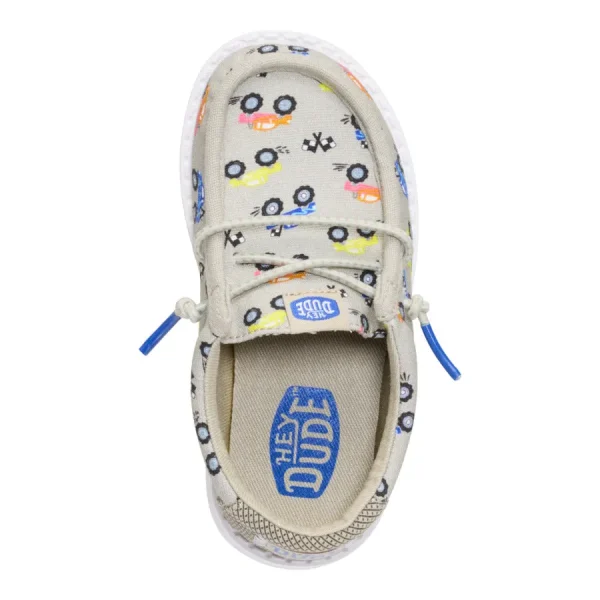 Tiny tires made for big adventures! Get him ready to hit the gas with these truckin’ awesome go-to’s and say hey to Wally Toddler Trucks. With a fun printed upper, no-tie elastic laces, and our tried-and-true easy on system he can dig, zoom and explore cause these shoes were built to groove.