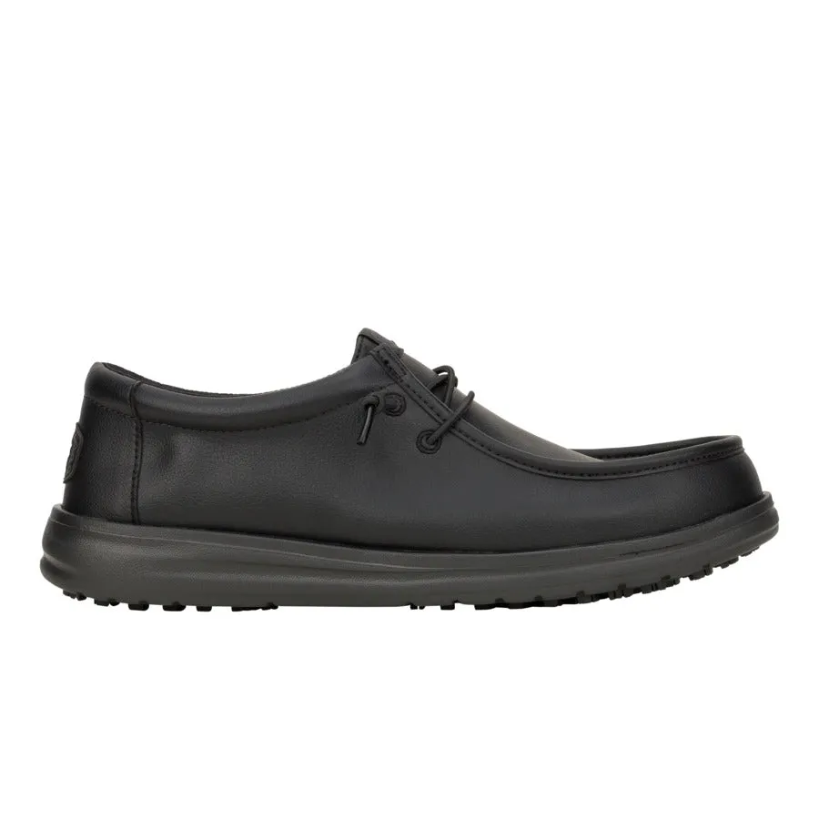 Now fully CE certified. Start your day off in the Wally Work Classic CE Wide. Faux leather, water repellent upper that cushions around the foot and is easy to clean. Slip resistant tread to keep you up and on your feet. Can you say crushing it? We can.
