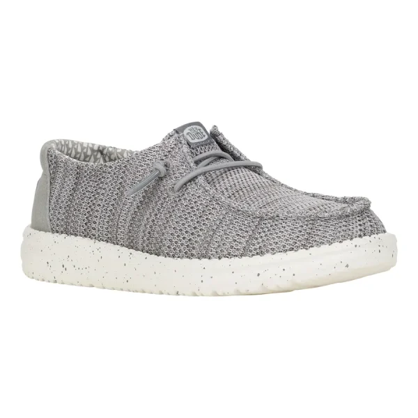 Stretch with the best in the Wally Youth Stretch Mesh. Classic HEYDUDE™ construction, stretch mesh material upper and elastic laces mean slip-on ease, comfort and lightness from top to bottom. Rock it all in foot hugging style.