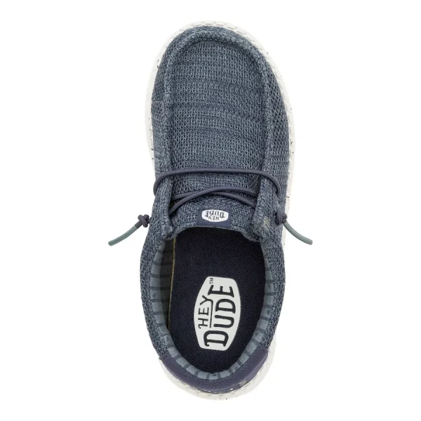 Introducing ultimate comfort and style with the Wally Youth Stretch Mesh slip on shoes. Featuring the signature HEYDUDE design, this shoe boasts a flexible stretch mesh upper and elastic laces for effortless slip on convenience. Have him enjoy a lightweight fit that hugs his feet, making it perfect for all-day wear.