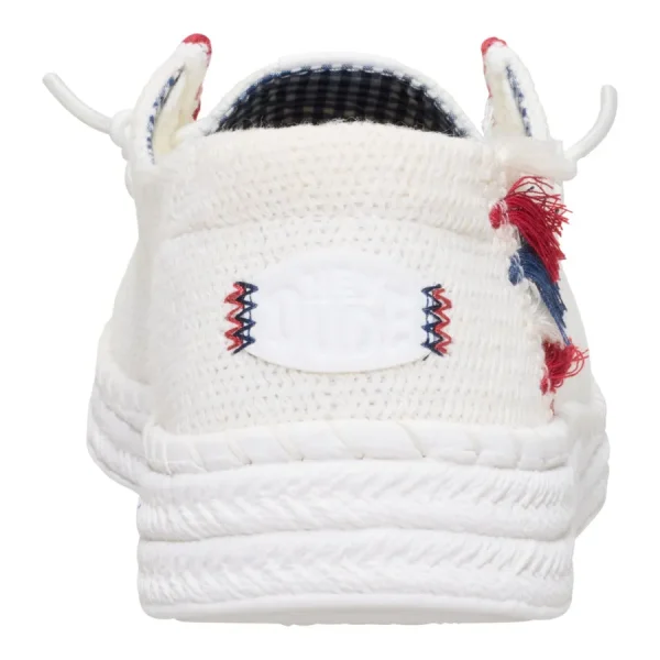 Let freedom ring with the Wendy Espadrille Americana – a cool, festive look that takes on ultra HEYDUDE™ comfort. Designed with a breathable, textile upper, a waffle textured heel with colorful tassels and elastic laces to slip on and off with ease. Finished off with a lightweight, espadrille inspired outsole and plenty of warm weather vibes.