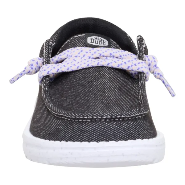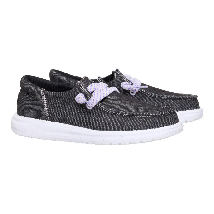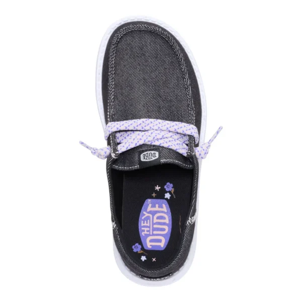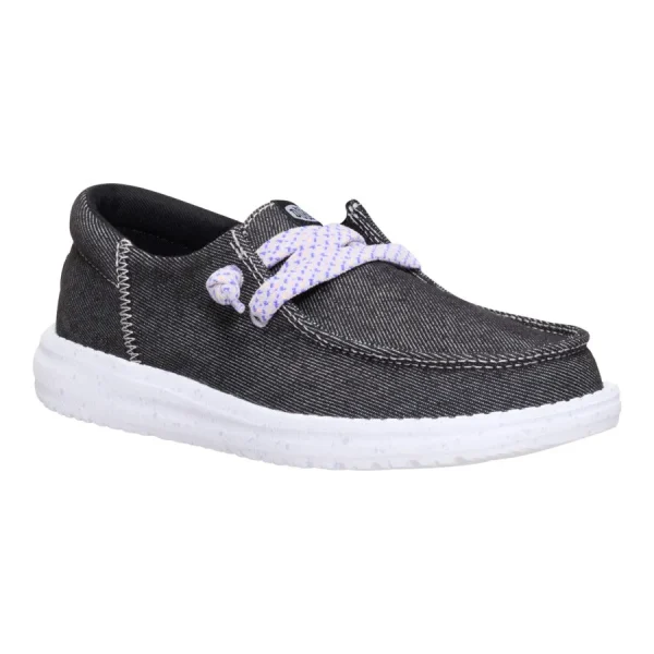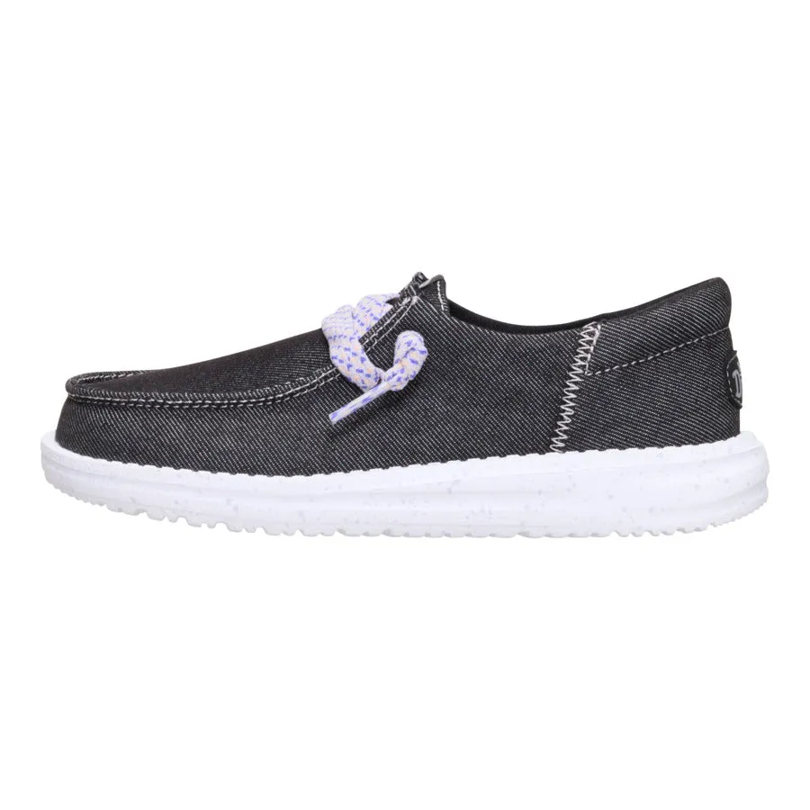 These Wendy shoes for big kids look like feet jeans and feel like little clouds underfoot. Classic denim textile and a speckled sole craft a fun, classy profile. A wide collar and signature HEYDUDE™ elastic laces make them super easy to step into. The best part is they fit snugly without having to tie the laces.