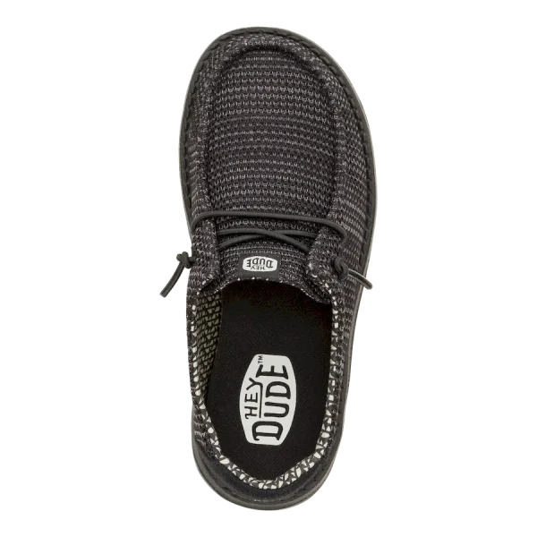 Stretch with the best in the Wendy Youth Stretch Mesh slip on shoe. Classic HEYDUDE™ construction, stretch mesh material upper and elastic laces mean slip on ease, comfort and lightness from top to bottom. Rock it all in foot hugging style.